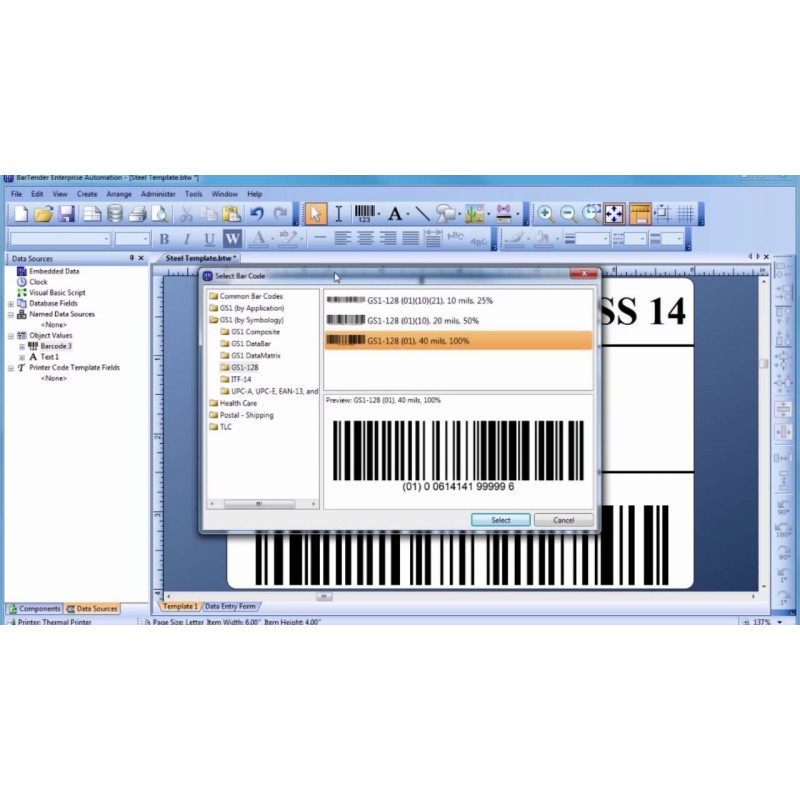 BarTender - це складна автоматична програма для створення штрих-кодів і етикеток для різних товарів. Завантажити BarTender Designer має унікальні функції у порівнянні з конкурентами на ринку прикладного програмного забезпечення, включаючи можливість створювати штрих-коди та етикетки з підтримкою тегів RFID.