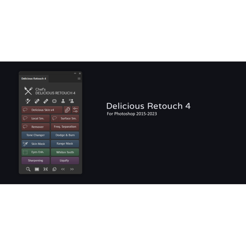 Turbo-зарядіть свій робочий процес ретуші за допомогою нової версії Delicious Retouch plugin – набору потужних інструментів для ретушування портретів та тіла, запакованих у панель розширення Photoshop.
