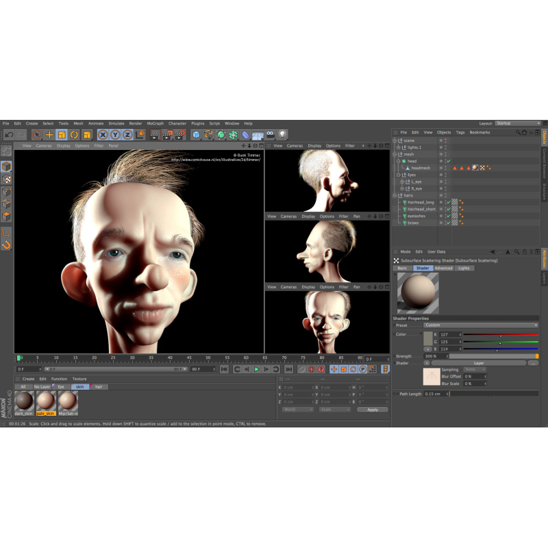 Незважаючи на те, що пакет призначений для професіоналів 3D, додаткові інструменти Studio залишаються дуже зручними і інтуїтивно зрозумілими. Процес створення складних 3D-ефектів, таких як волосся, напрочуд простий і швидкий, оскільки CINEMA 4D робить за вас більшу частину важкої роботи. Наприклад, при русі персонажа його волосся автоматично колисається або майорить; тепер для завдання зіткнень тисяч об'єктів один з одним вам знадобиться лише кілька клацань мишею.